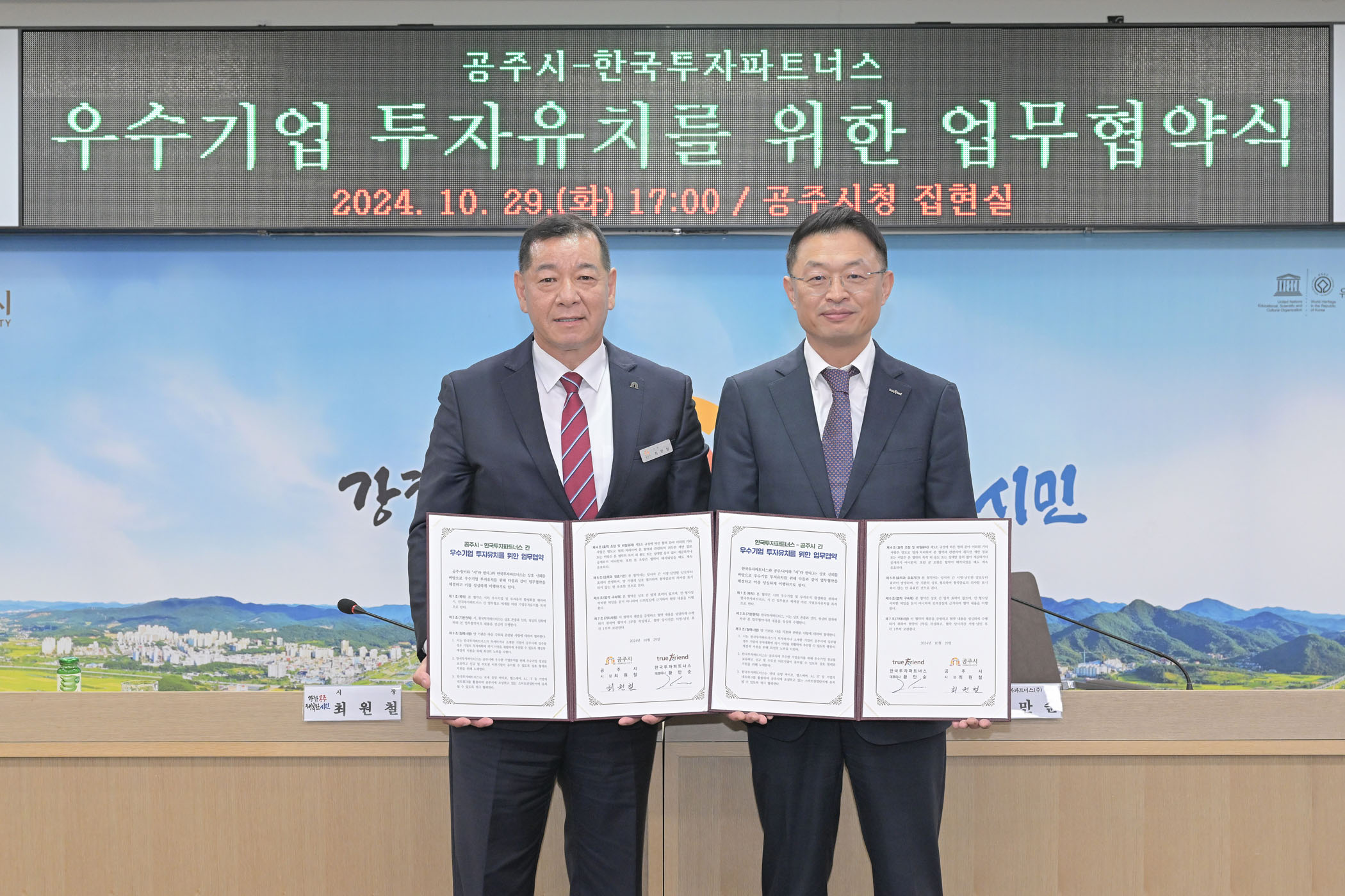2024년 10월 29일 공주시-한국투자파트너스 우수기업 투자유치를 위한 업무협약식 [집현실]
