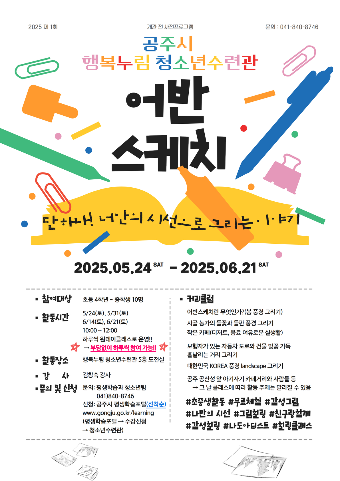 강좌명 (원데이)공주의 골목을 그리며, 나를 그리다!(어반스케치) 교육기간 2025-06-21~ 2025-06-21